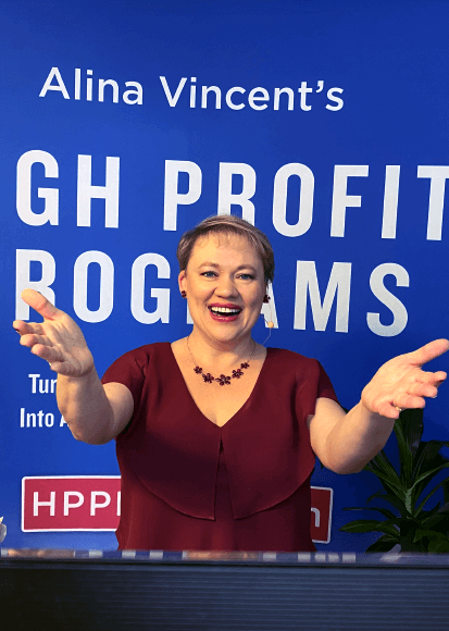 Alina Vincent is a business strategist and the creator of the Money Making Program Blueprint program and the 5-Day Challenge Launch Formula, which helped her grow her business from zero to over a million dollars in the first 4 years.