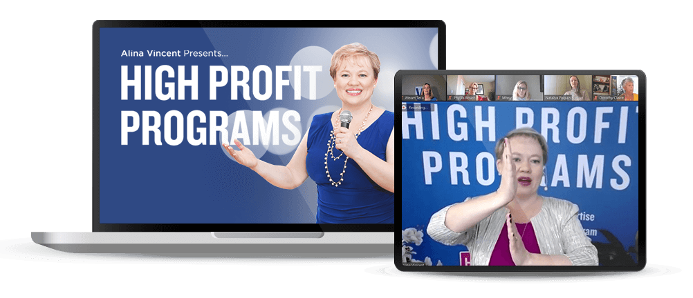 Because it’s not just about what to create, but how and when. High Profit Programs will help you take the right steps for your business, at the right time, for maximum impact and income, guiding you at every step and providing personalized feedback.